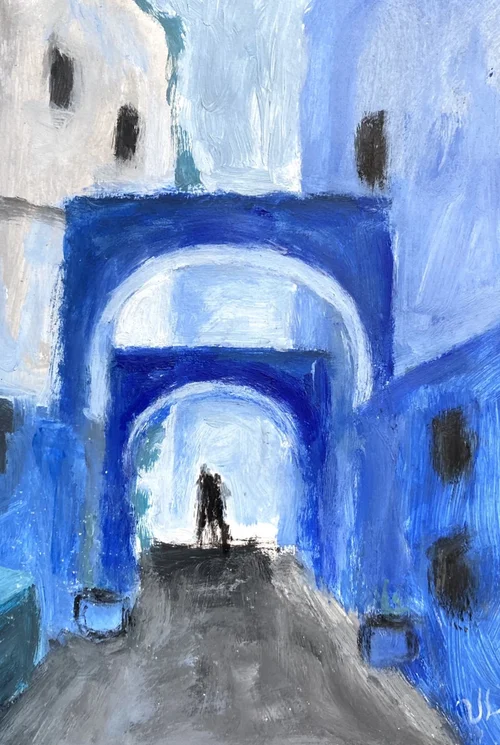 Acrylic on Canvas Paper, 11” x 14” (on glass frame, 16” x 20”)